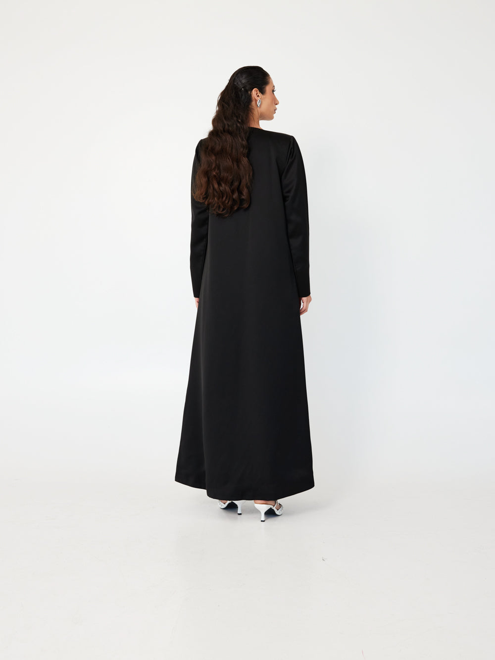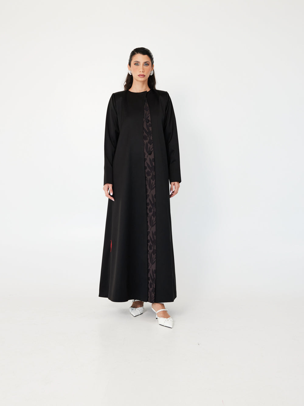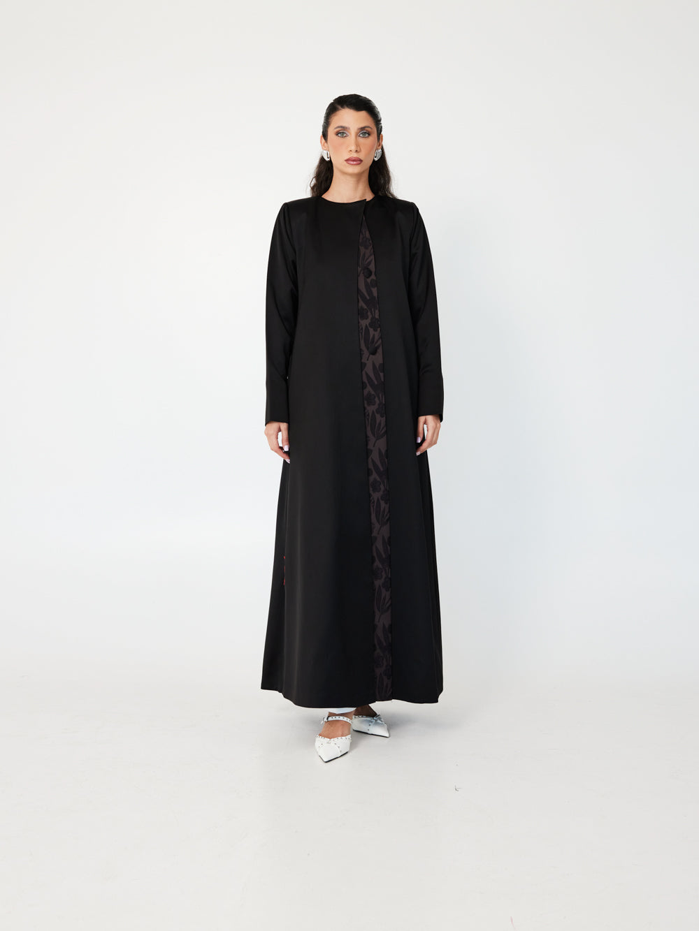 Featuring a soft botanical jacquard weave, this abaya is available in both deep black and earthy dark brown. Understated yet rich in detail, perfect for elegant everyday wear.
