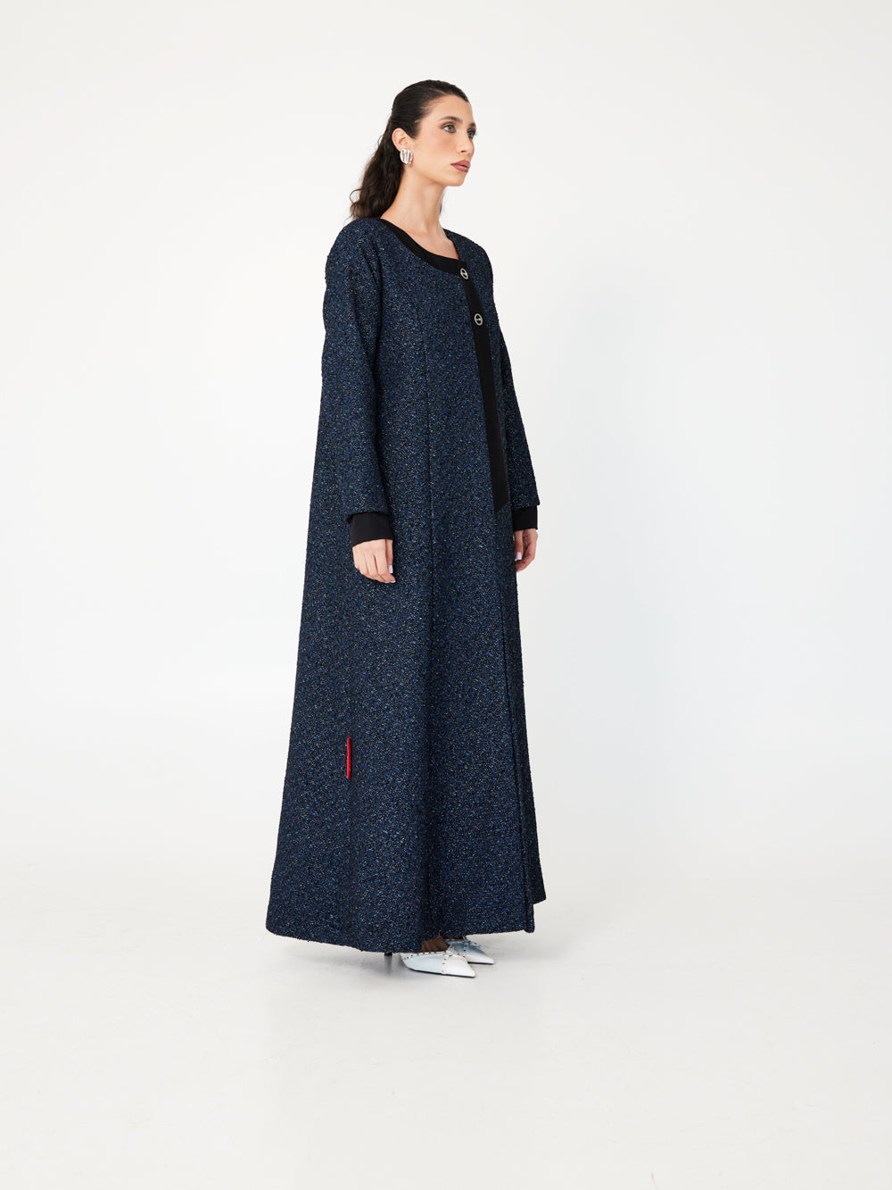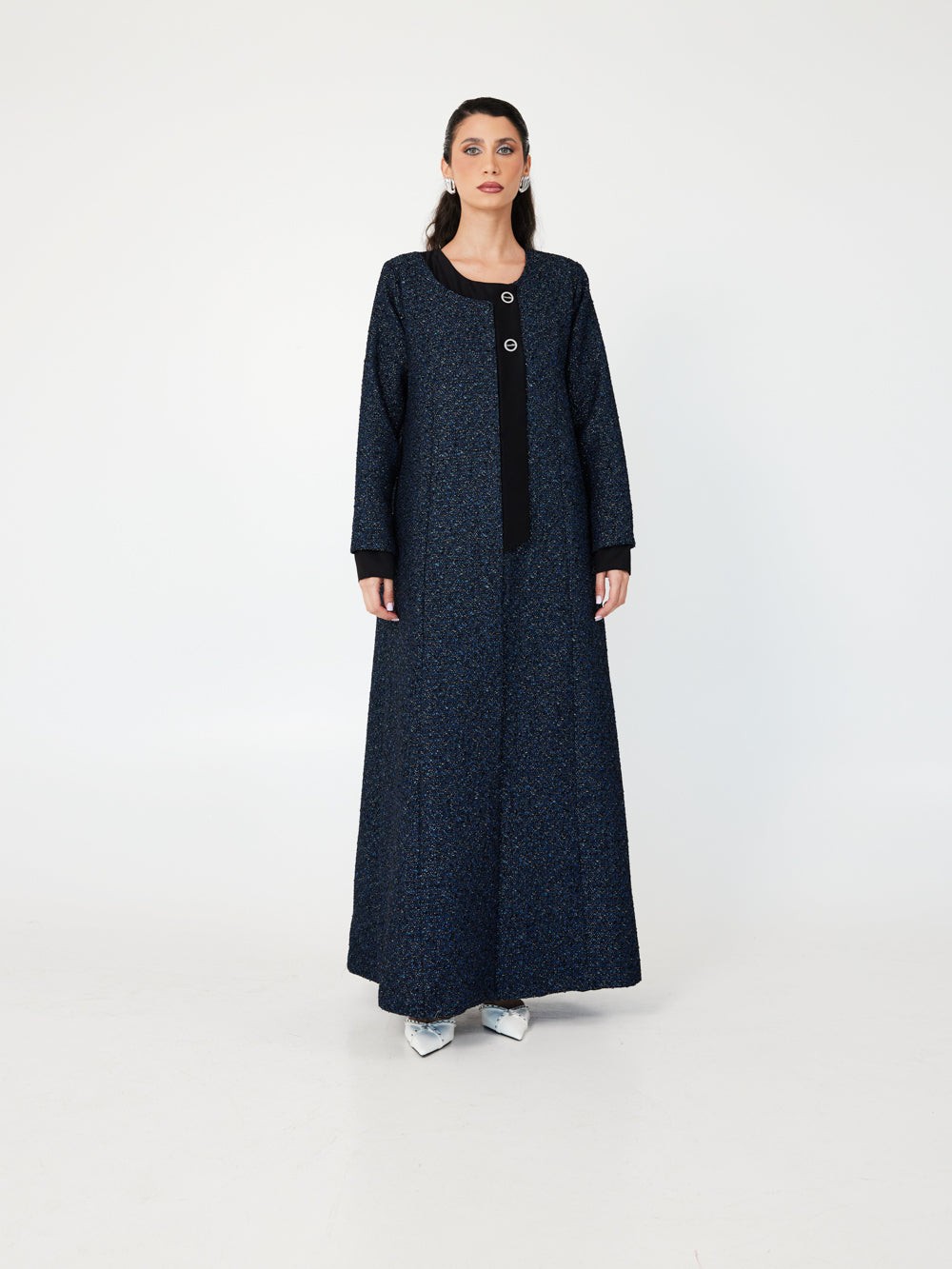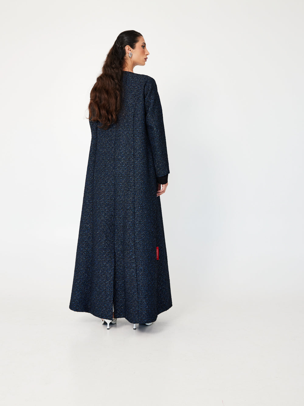 Crafted in a deep sapphire hue, this abaya features a clean, structured cut with just a touch of shine. A perfect balance of color and sophistication for special gatherings or polished everyday wear.