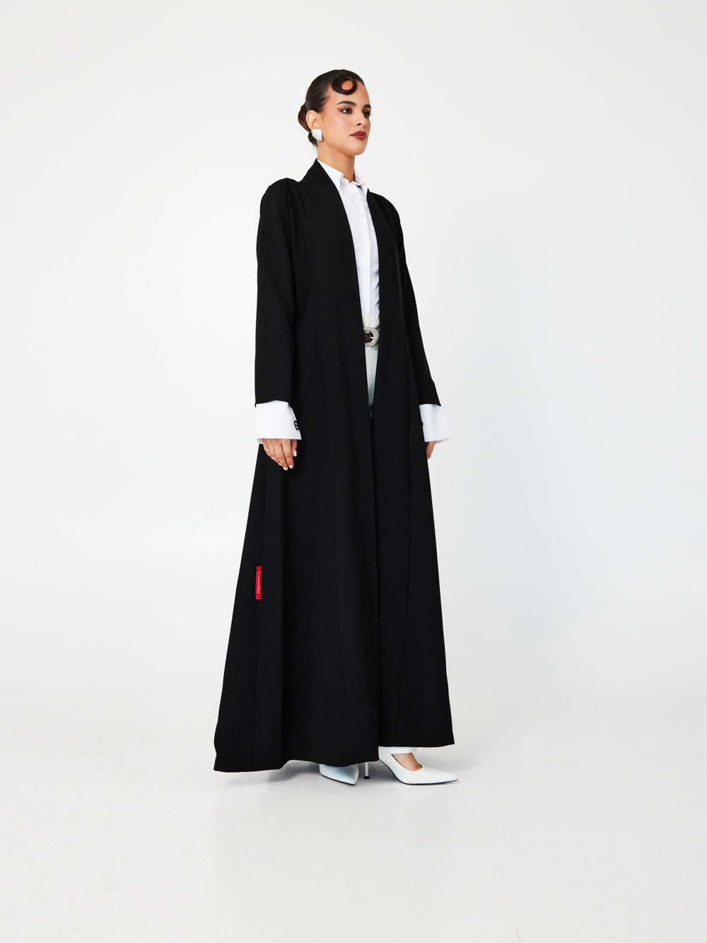 A suiting-inspired abaya with contrast cuffs and clean lines. Designed for women who lead with style, available in three colorways for every mood.