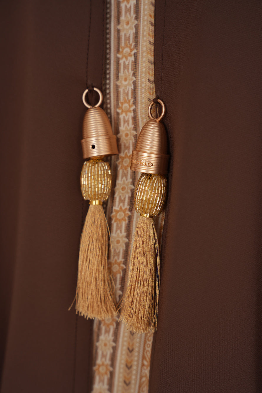 Rooted in warmth and quiet strength, Sahara Veil is a two piece ensemble that speaks through texture and flow. Featuring a delicately embroidered inner dress and a soft, draped outer layer, this look channels grounded elegance with subtle movement. A timeless silhouette for those who embody calm confidence and earthy grace.